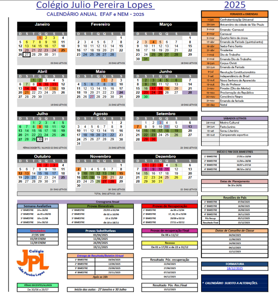 CALENDÁRIO ATUALIZADO FUNDAMENTAL II ANO LETIVO 2025