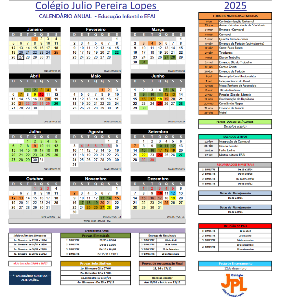 CALENDÁRIO INFANTIL E FUNDAMENTAL – ANO LETIVO 2025